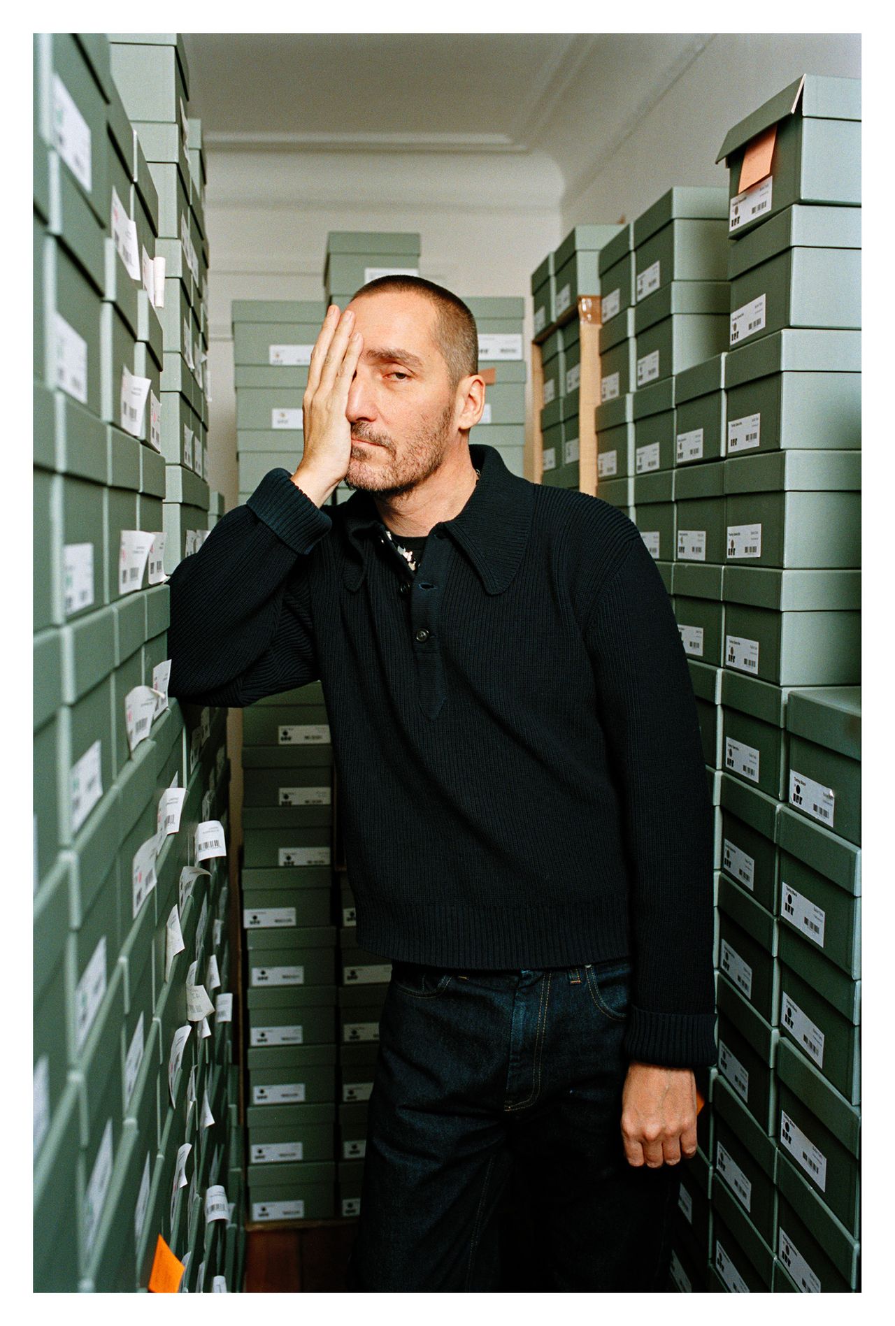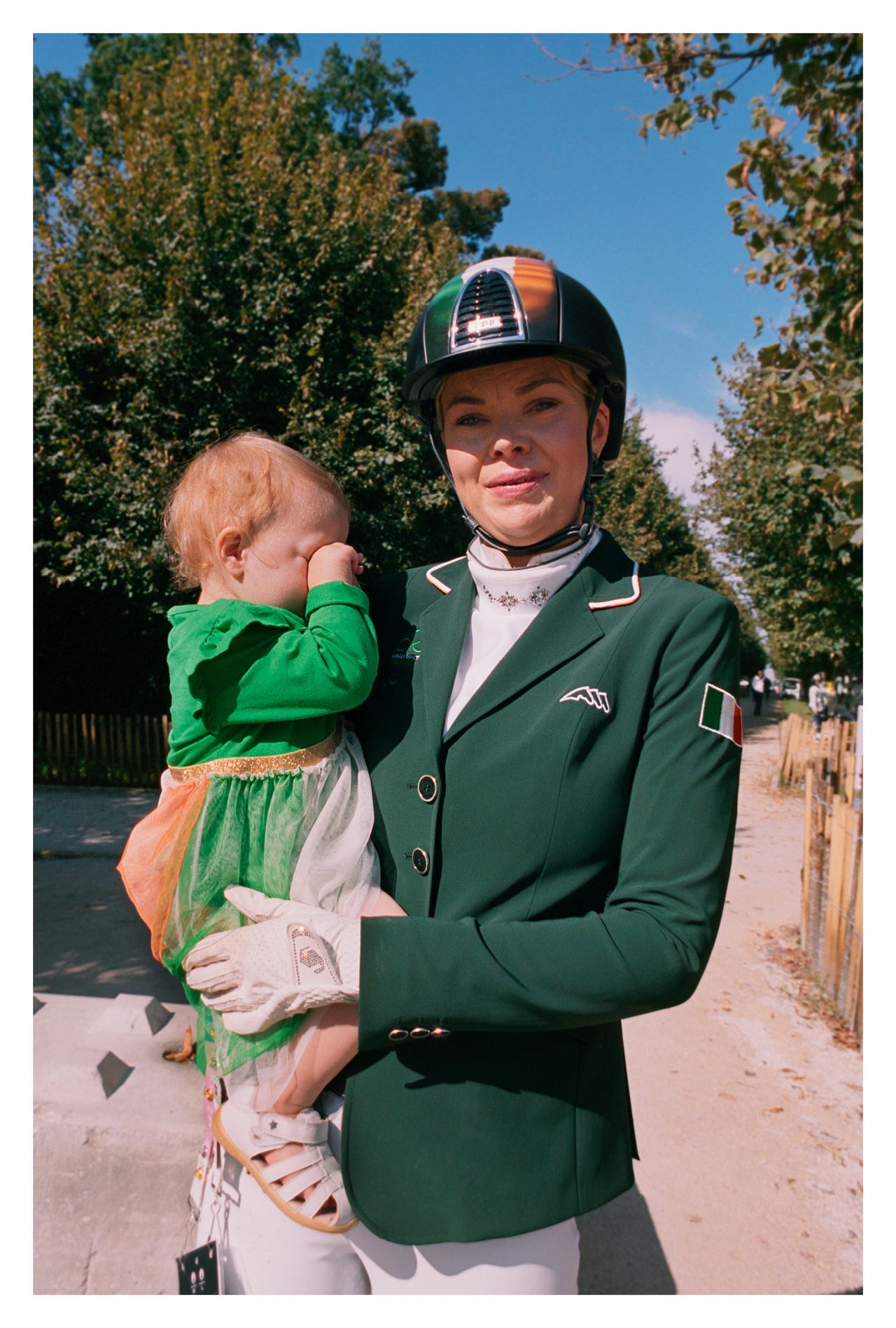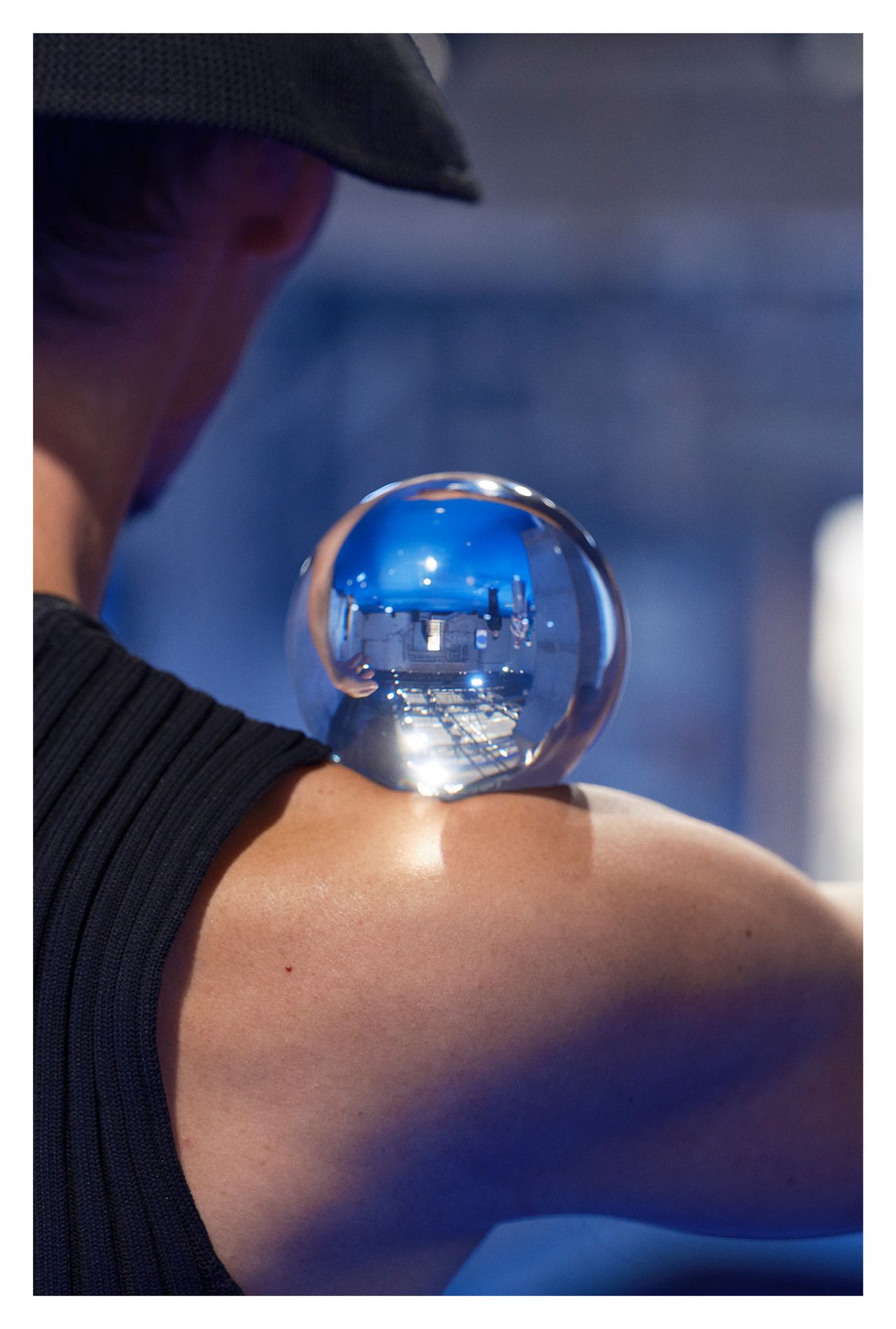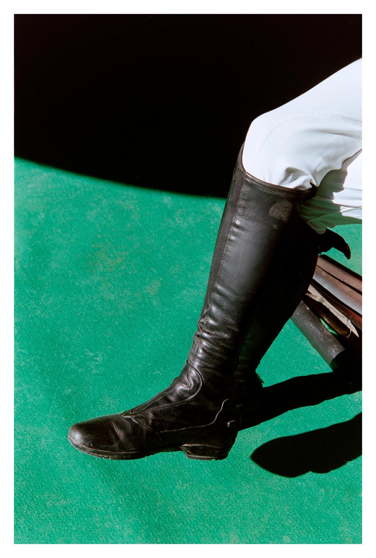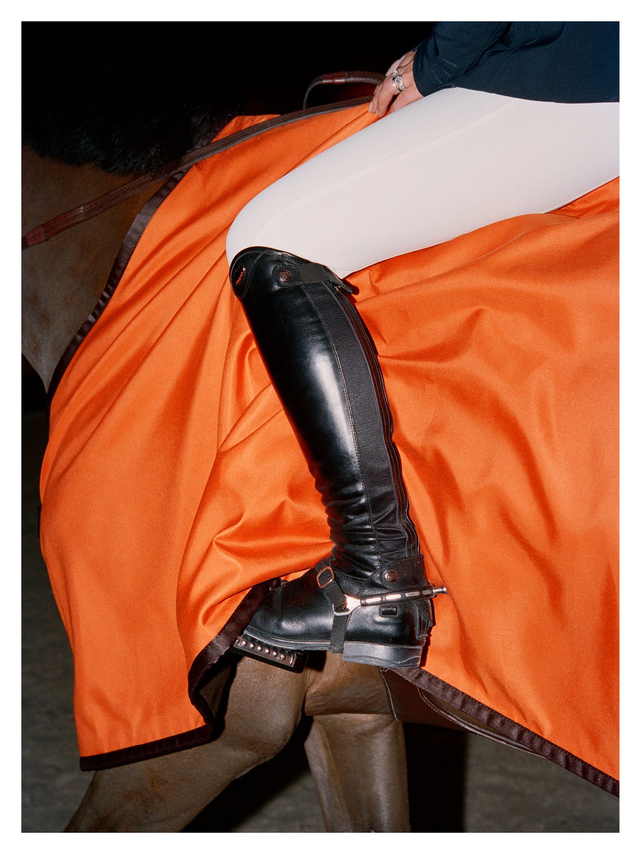 Lorsque Hermès fait appel à Yann Stofer pour une carte blanche à l’occasion du Saut Hermès 2022 au Grand Palais Éphémère, à Paris, le photographe choisit une approche intimiste, loin de la photographie d’équitation classique. Il s’intéresse aux coulisses plutôt qu’à la compétition et pénètre au cœur même de la relation entre le cheval et son groom. Il observe les gestes tendres de celle ou celui qui le prépare, le brosse, tresse sa crinière et le harnache en lui parlant sans cesse. Il s’approche au plus près de l’animal pour saisir des cils aiguisés, un cou tacheté, une crinière en tenture. Les cavaliers sont réduits à des jambes bottées de cuir luisant contre un pelage gris ou un drapé flamboyant ; des têtes bridées entrent dans le cadre contraint de l’objectif, mettant en valeur une animalité domptée. Mieux que tout discours, la netteté des contrastes, la brillance des couleurs et la radicalité des cadrages racontent l’exigence technique et esthétique de l’événement.