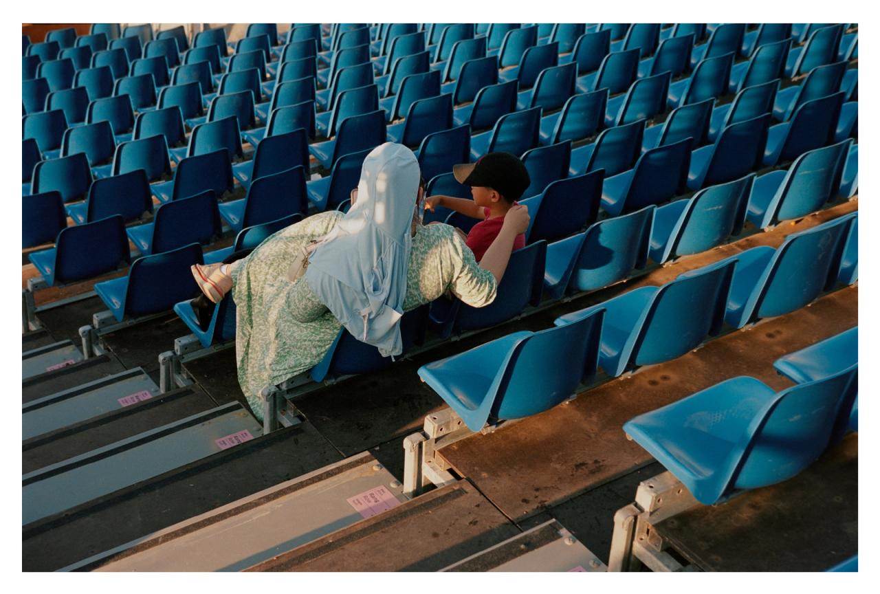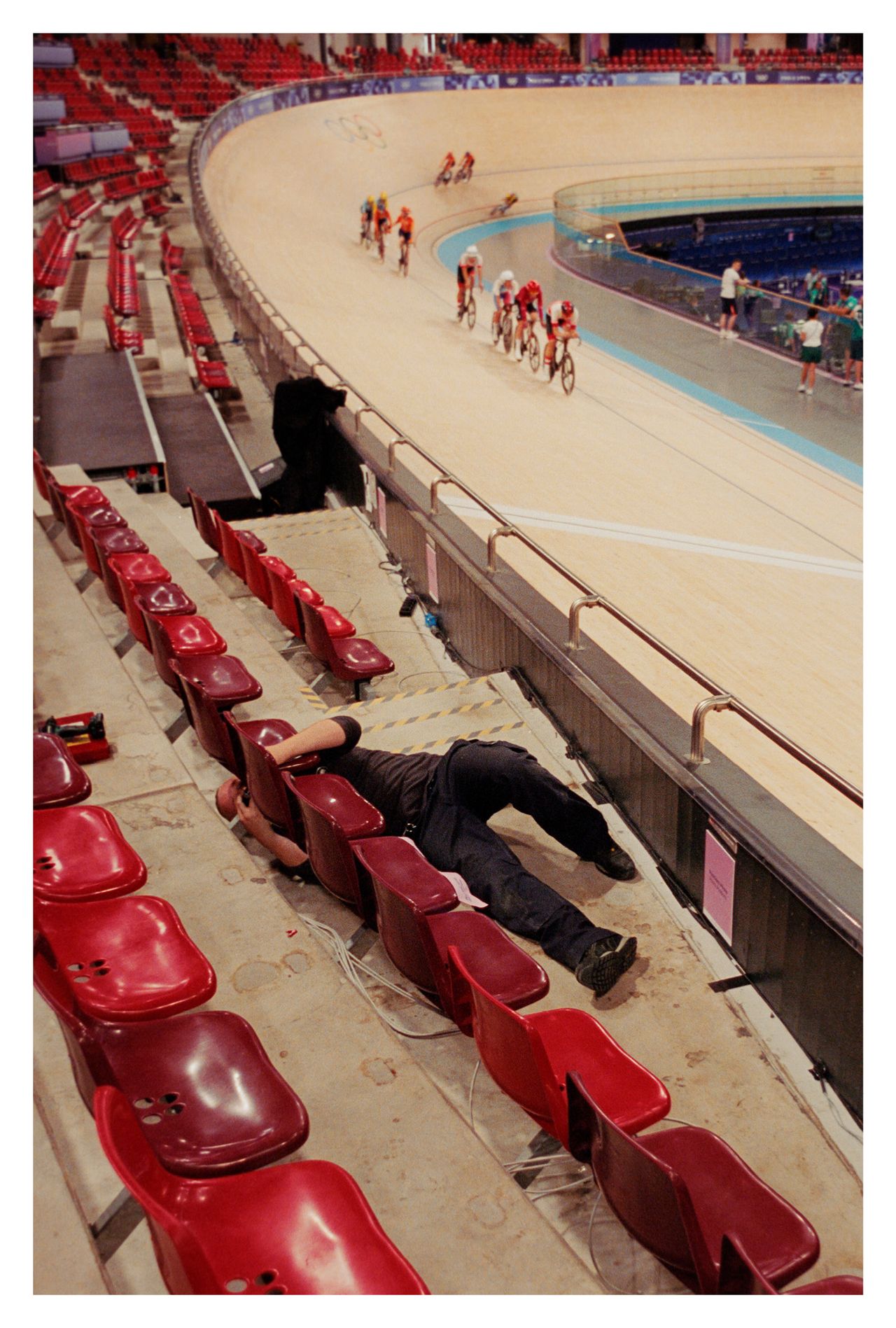 Des répétitions jusqu’à la clôture de la compétition, il fait poser les danseurs quelques secondes, assis sur une chaise : en tenue de sport ou de scène, avant ou après le maquillage, avant ou après leur passage. De cette approche naît une série à laquelle il est particulièrement attaché, pour son caractère intime et la force de ses portraits — une démarche qui n’aurait sans doute pas été possible ailleurs que dans ce lieu.