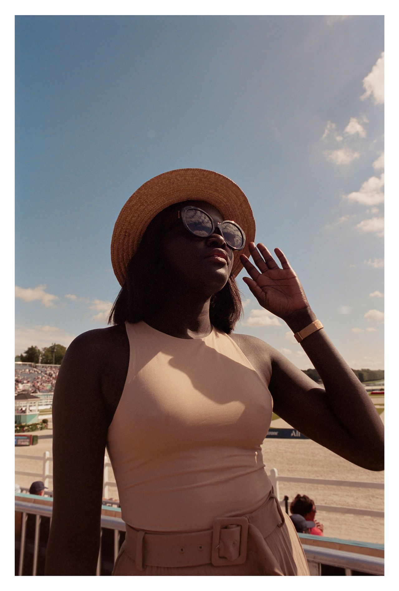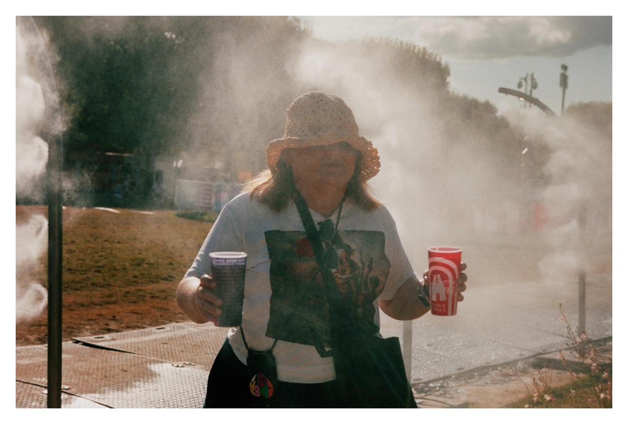 Et quand l’agitation retombe, restent aussi ces détails muets que l’objectif du photographe saisit : un reste de taboulé oublié au fond d’une assiette, un couteau planté dans un morceau de fromage, des gobelets vides alignés comme les témoins d’une fête passée. Autant de petites natures mortes, traces fragiles et intimes de ce partage collectif. Chaque cliché témoigne d’un fragment de vie et l’ensemble compose un tableau bigarré où se mêlent tradition, convivialité et codes sociaux plus ou moins assumés. Un microcosme qui raconte une manière d’être ensemble, entre tradition aristocratique et convivialité populaire, entre spectacle sportif et art de vivre à l’anglaise. Une Angleterre à la fois raffinée et décontractée, snob et populaire, où chacun trouve sa place, côte à côte, le temps d’un pique-nique d’été.
