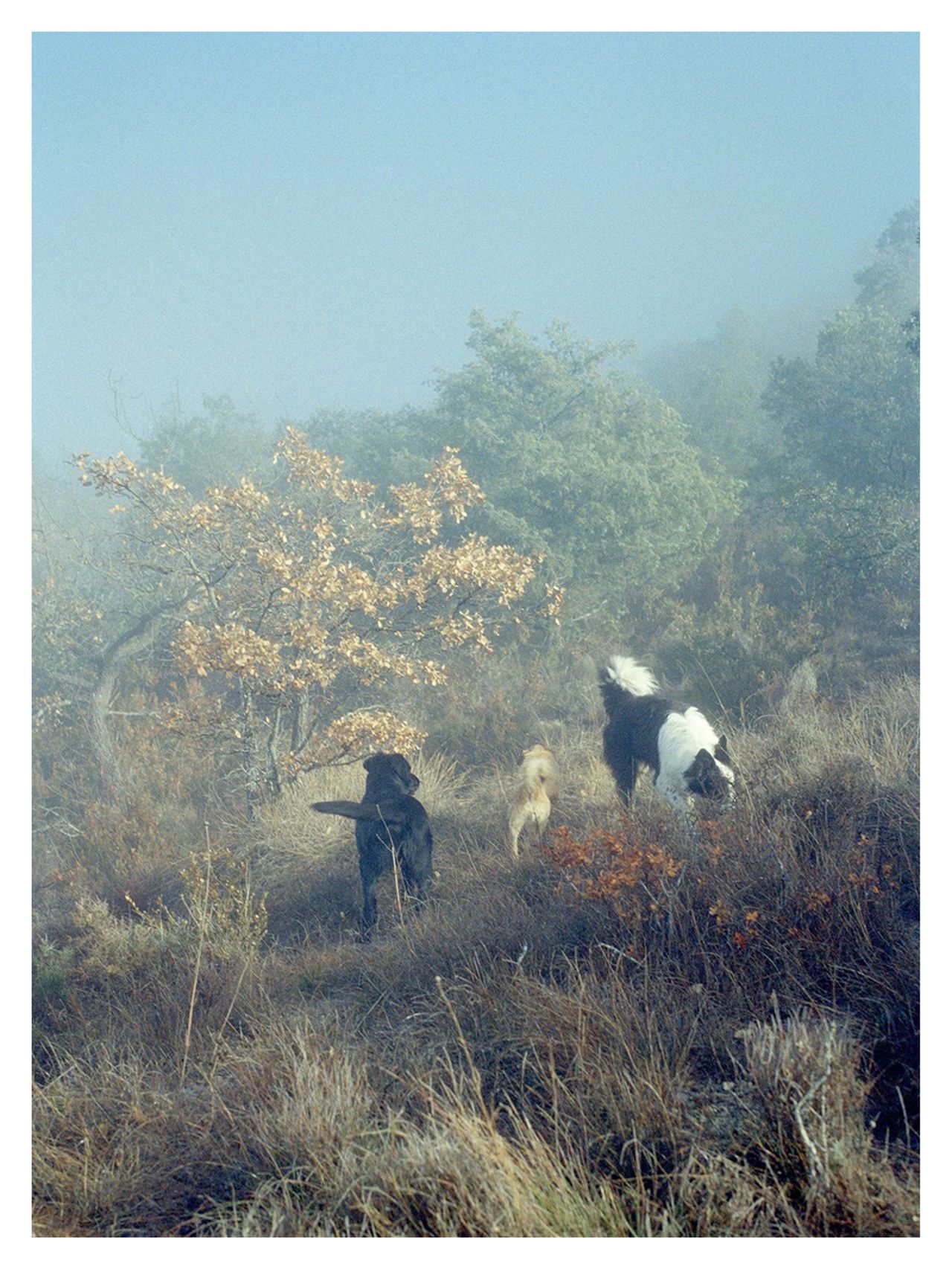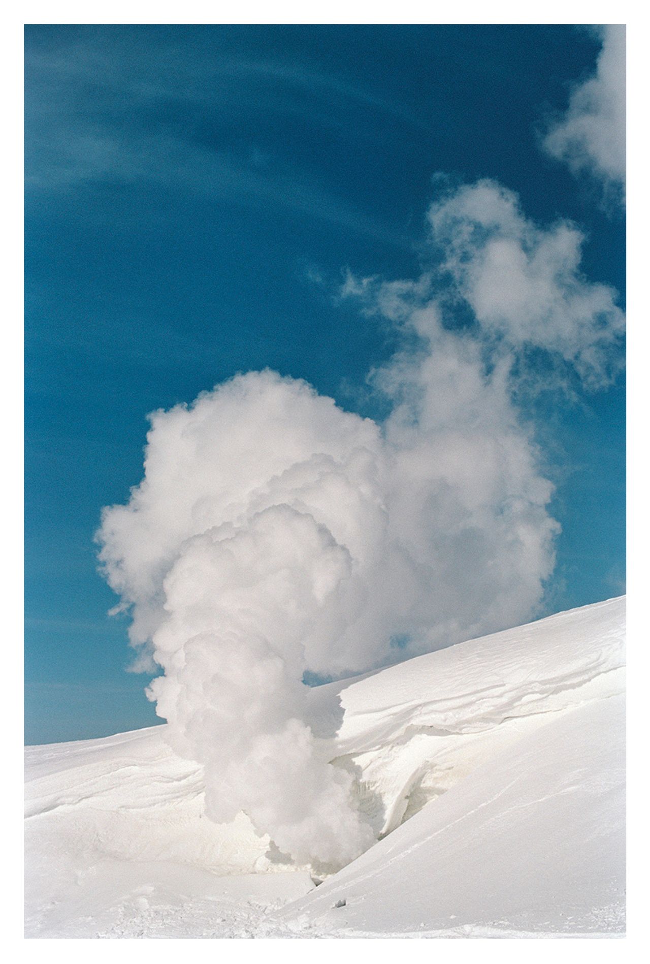 Tout semble prendre une autre forme. Une fleur séchée au détour d’un sentier s’inscrit comme un idéogramme. Tout devient graphique dans cette dérive à laquelle il s’est laissé aller. Niseko, Hakodate, Obihiro, Kushiro, Abashiri, Asahikawa, comme autant de lignes de fuites et de poches temporelles... On glisse avec lui sur les pistes vierges et non balisées de Asahidake, comme dépassé par la magie de ce pays. Ses photo- graphies témoignent de son abandon émerveillé : Hokkaidō est bleu, blanc, doré.